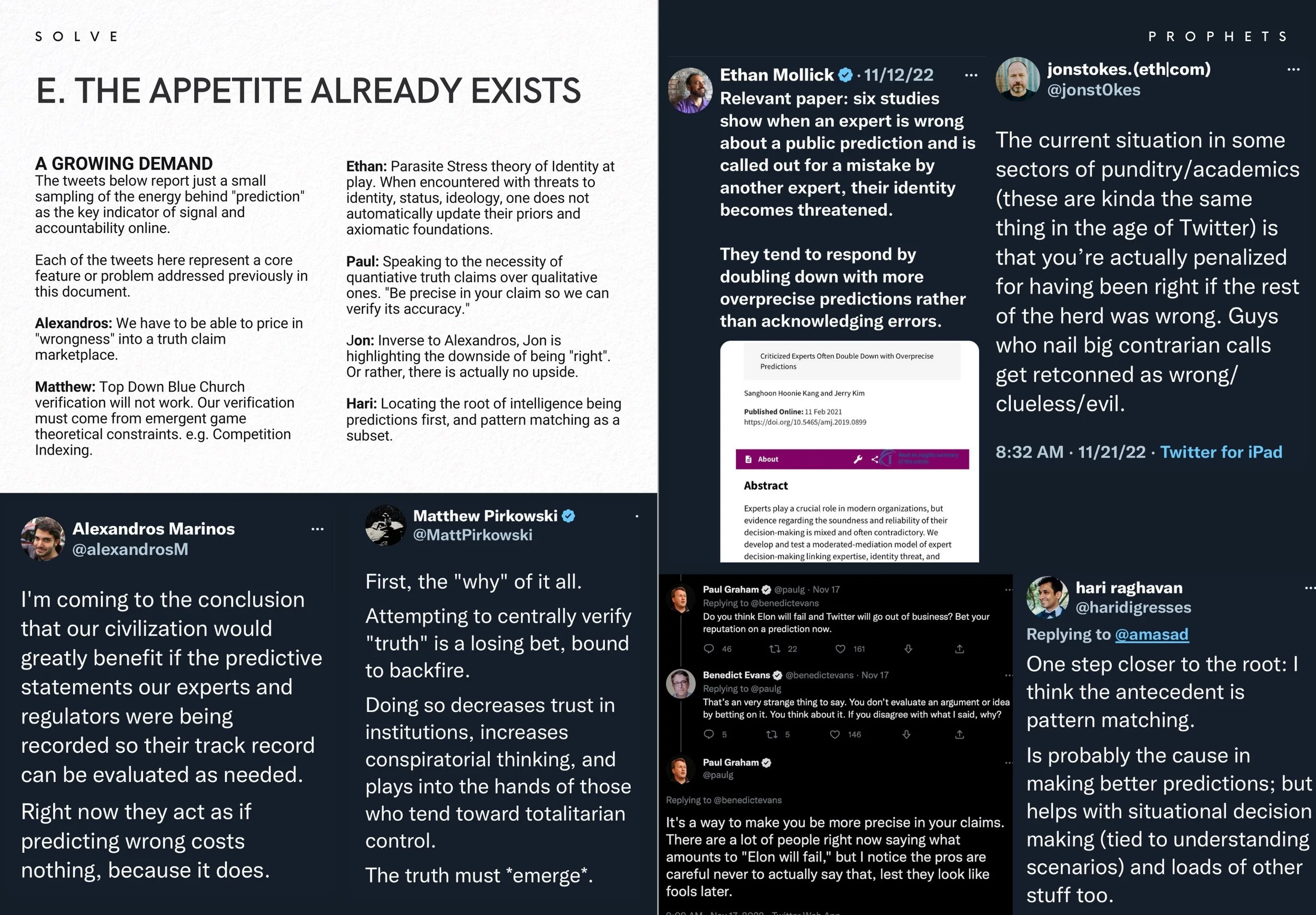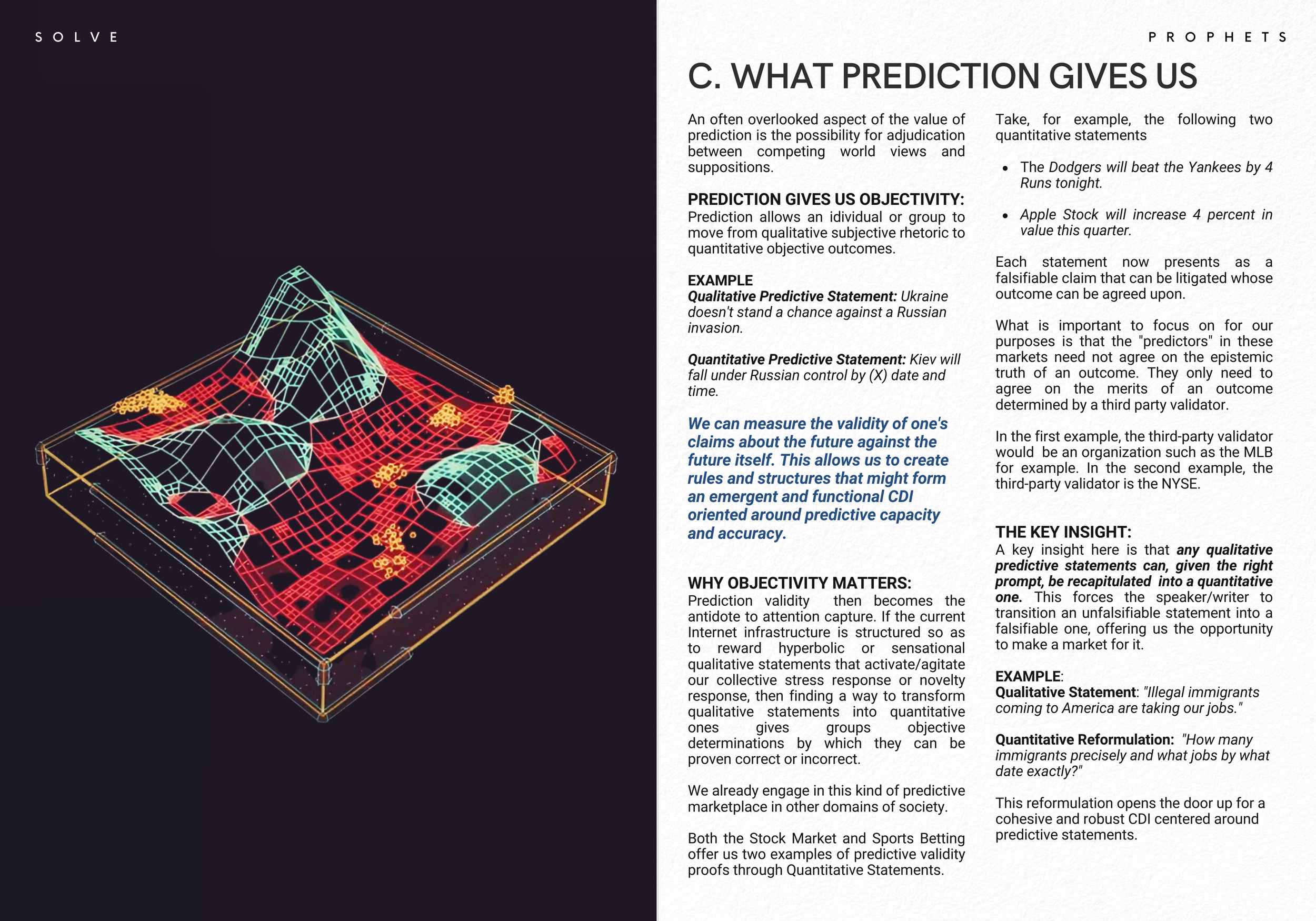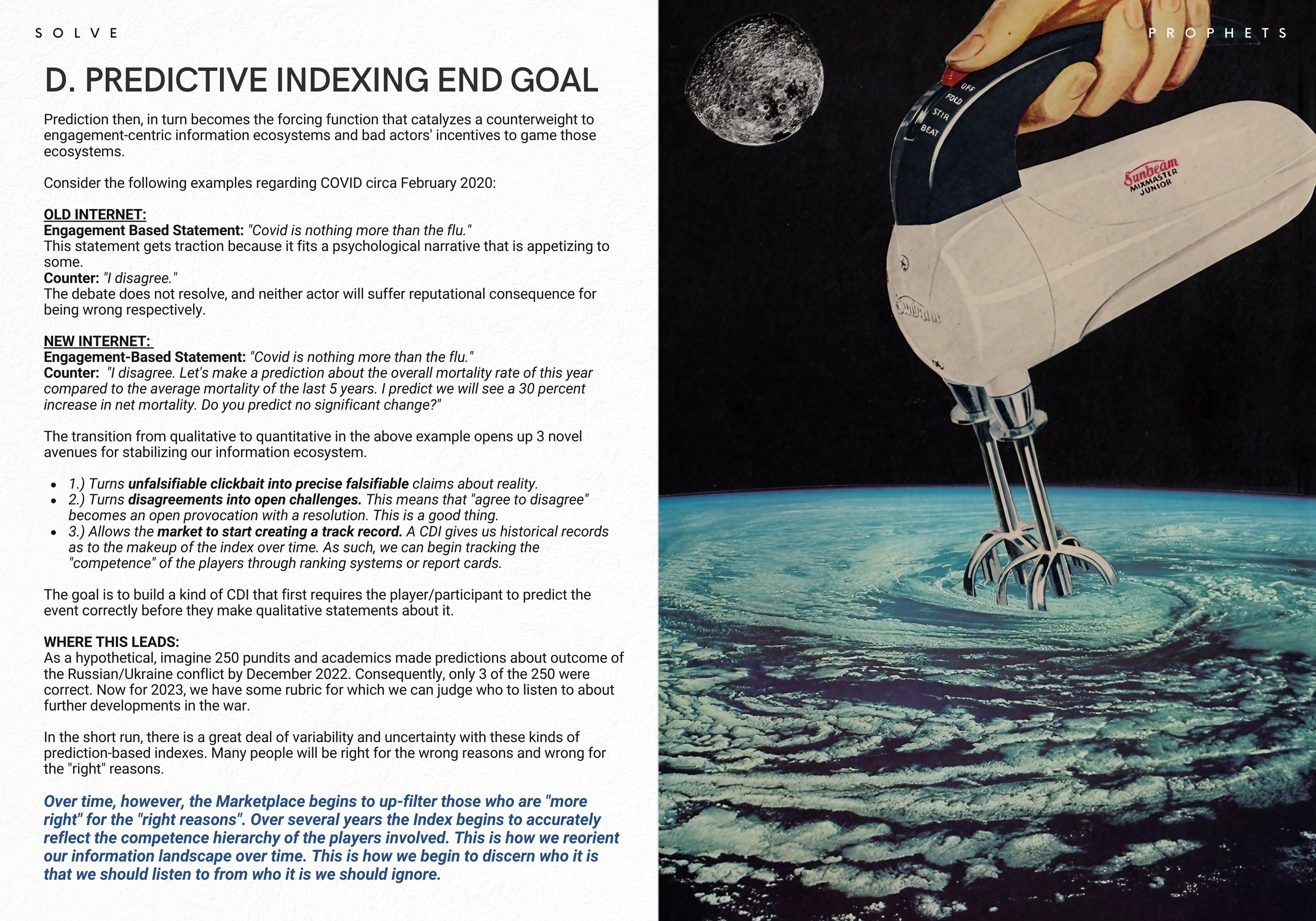 Makes the case that the most coherent solution to the "core problem" is to fork the internet into two information domains. One for attention and the other for prediction. We will make this case by highlighting the power of socially mediated prediction markets as the anecdote to the problems outlined in section 1. READ